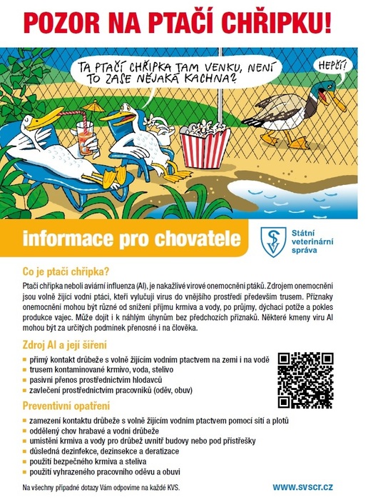 Úvod > Život v obci > Aktuality > Informace Krajské veterinární správy MSK o potvrzení ohniska ptačí chřipky
